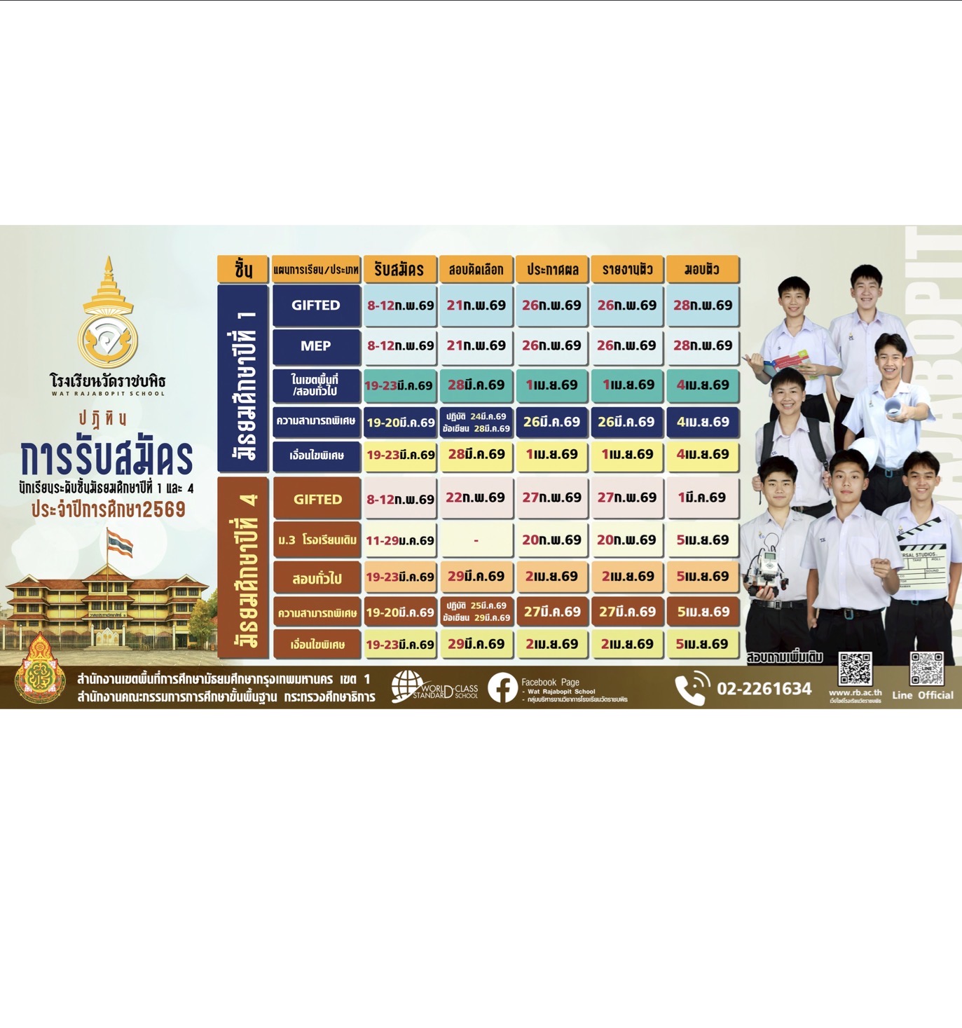 ปฎิทินการรับสมัครนักเรียน ปีการศึกษา 2569 ระดับชั้นมัธยมศึกษาปีที่ 1 และ 4