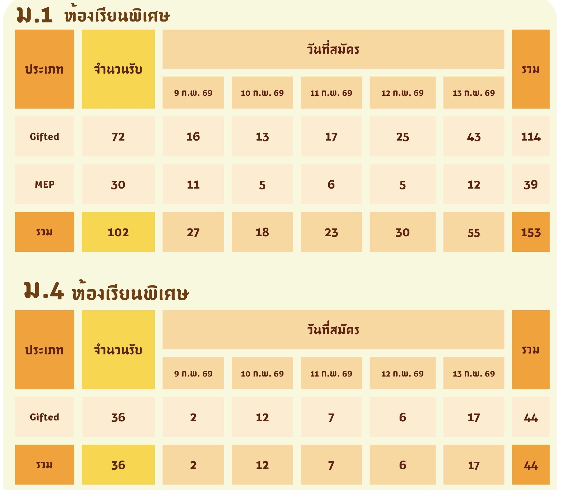 การรับสมัครนักเรียน (ม.1 และ ม.4) ห้องเรียนพิเศษ ปีการศึกษา 2569