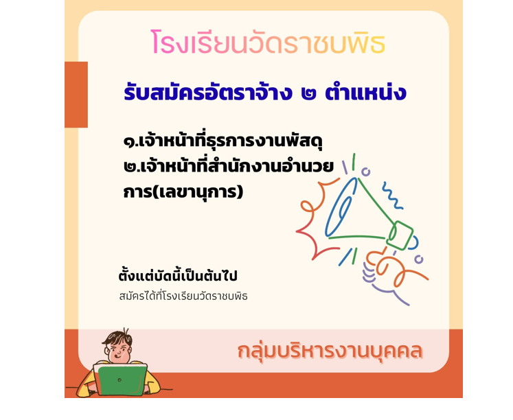 ประกาศ เรื่อง รับสมัครบุคคลเพื่อจัดจ้างเป็นลูกจ้างชั่วคราว ตำแหน่ง เจ้าหน้าที่สำนักงานพัสดุและสินทรัพย์ 23 ม.ค. 69