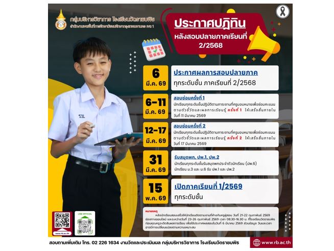 ประกาศปฏิทินหลังสอบปลายภาค 2/2568 21 ก.พ. 69