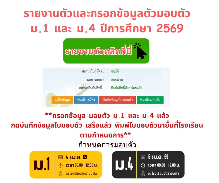 >> คลิกเพื่อรายงานตัวนักเรียน ปีการศึกษา 2569 <<